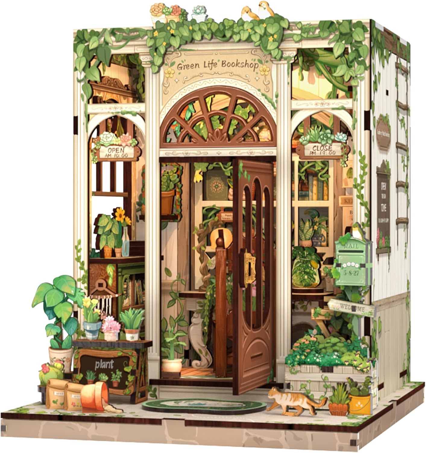 Nature-Inspired Bookshop Book Nook with LED Lights