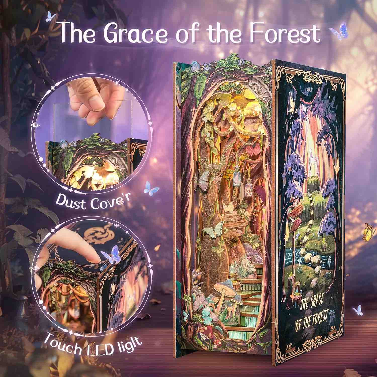 Adorned with mystical details like butterflies, mushrooms, and shimmering lights, it offers a delightful escape into a serene woodland world. A stunning addition to any bookshelf or home decor.