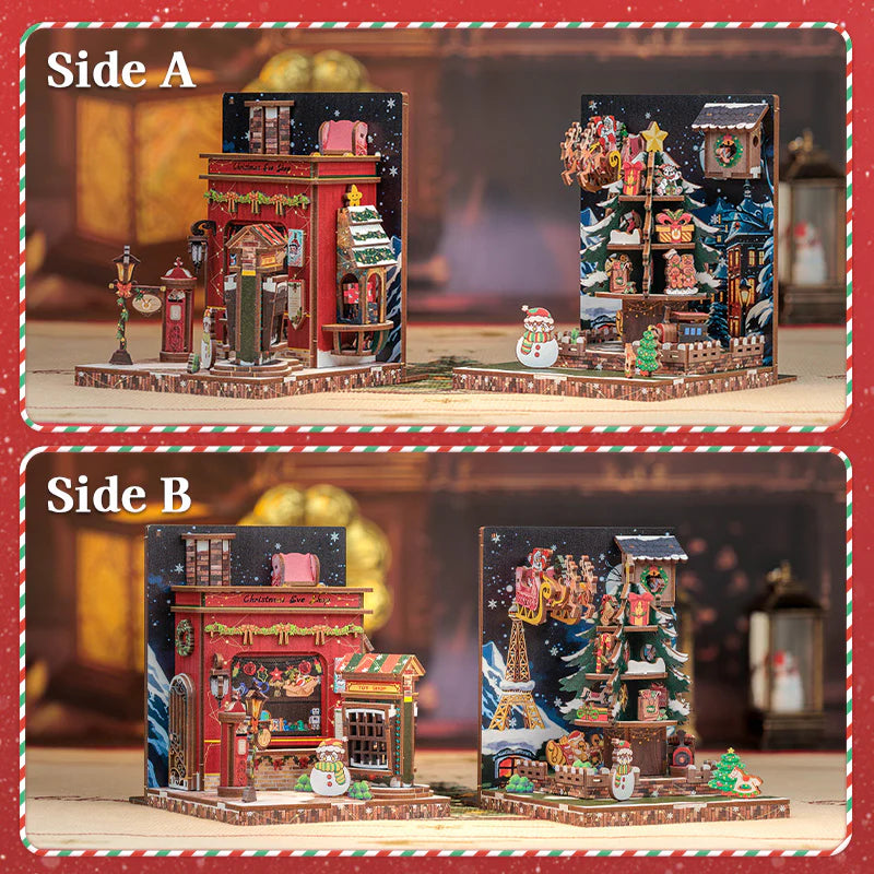 Bring holiday cheer to your shelves with this charming Christmas DIY book nook! One side features a cozy Christmas shop, while the other reveals a snowy wonderland filled with festive surprises.